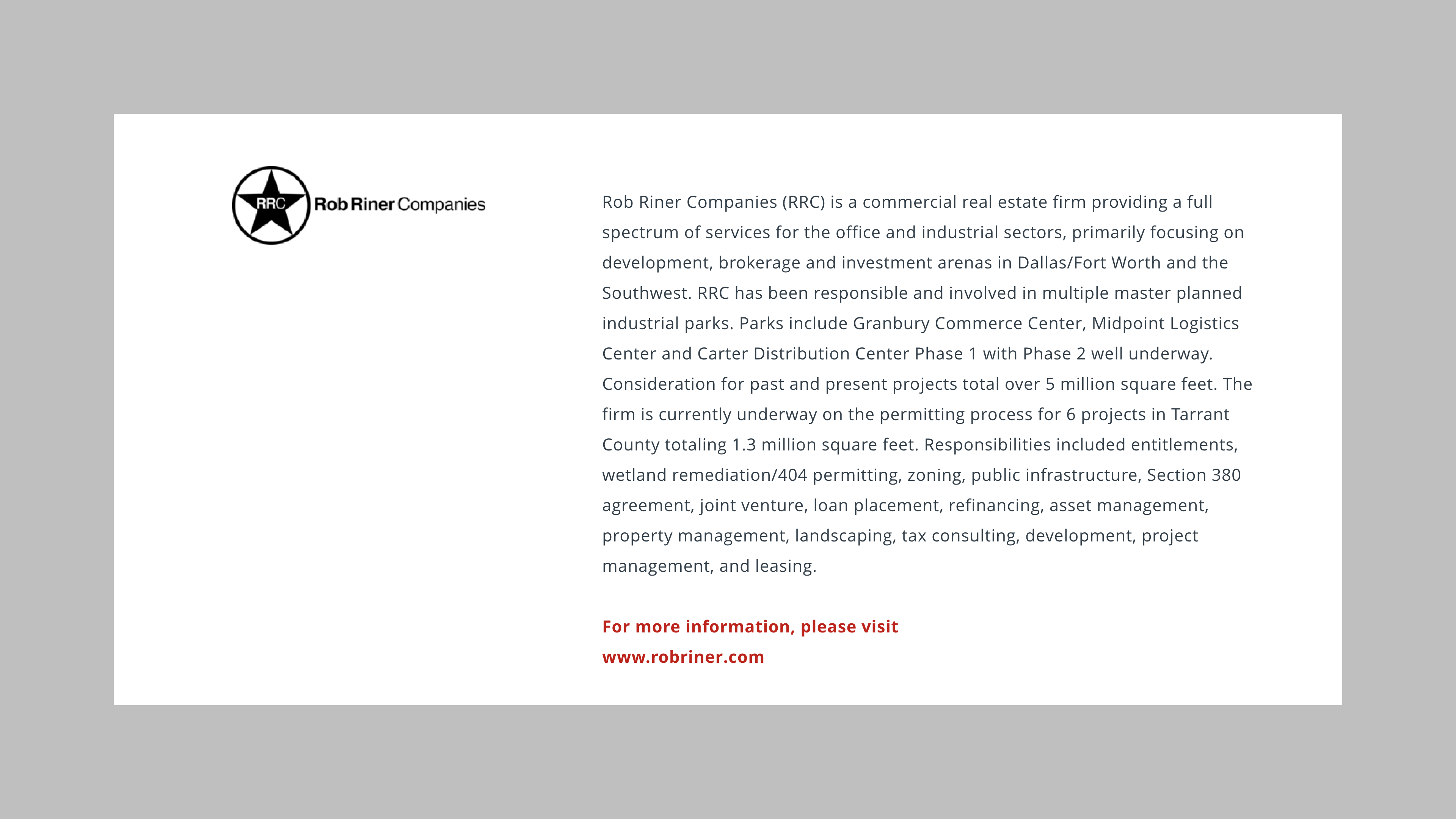 Clarion Partners, Crow Holdings, Rob Riner Companies...